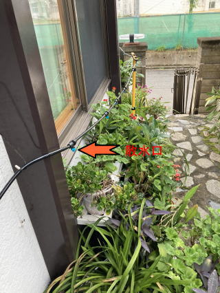 自動散水機 2025/8/1〜8/4 これです、これです今まで探していたものは! 水道蛇口にタイマーをつけ、セットした時間になったら自動的に散水す『自動散水機』 タイマーは一日に4回セット可能 理屈は簡単、セットされた時間になれば、タイマーのホースが開き水道水が流れるというもの。 玄関前は塩ビパイプの中を通しました。 水道から左右に分岐させました。
